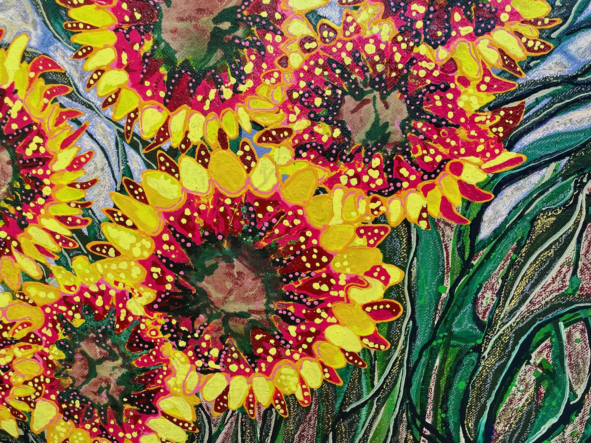 James Lovekin (b, 1975, Buffalo, NY) creates vivid and colorful artworks that express the unlikely absurdities of being a human in body.